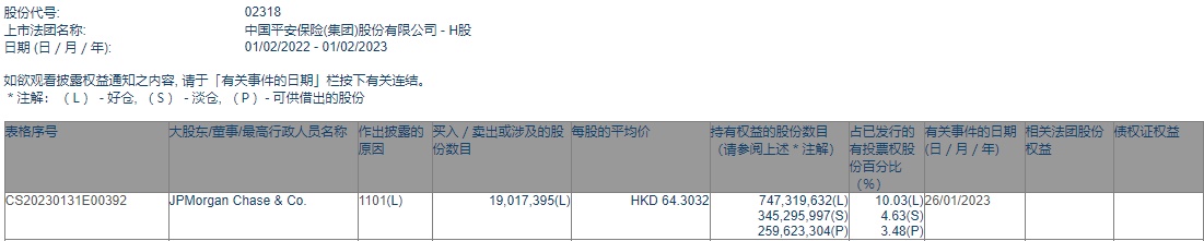智通财经APP获悉,香港联交所最新资料显示,1月26日,小摩增持中国平安(02318)1901.7395万股,每股作价64.3032港元,总金额约为12.23亿港元。增持后最新持股数目约为7.47亿股,最新持股比例为10.03%。