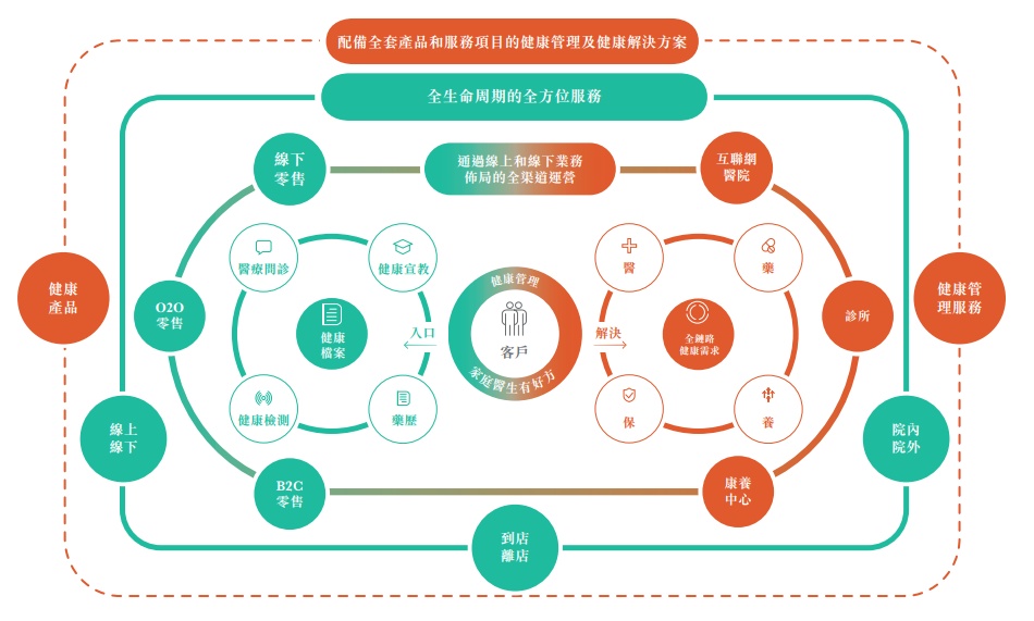 其一,德生堂提供全套产品和服务项目的健康管理及健康解决方案,以满足客户在整个医疗健康价值链上的全方位医、药、养、保需求。