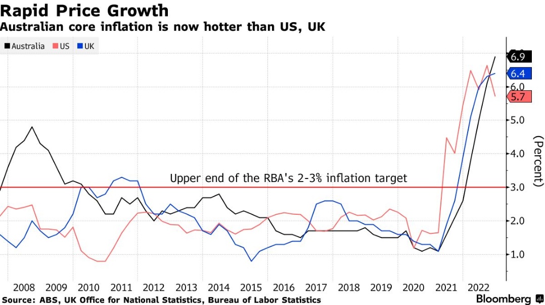IMF工作人员称:“澳大利亚经济预计将在2023年实现软着陆,尽管下行风险明显倾斜。”他们指出,“金融状况收紧、高通胀导致实际收入减少、房价下跌以及全球增长疲软”都是威胁。