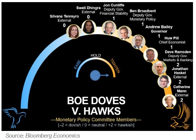 上次由九名成员组成的货币政策委员会出现分歧,贝利与多数人投票赞成加息50个基点。