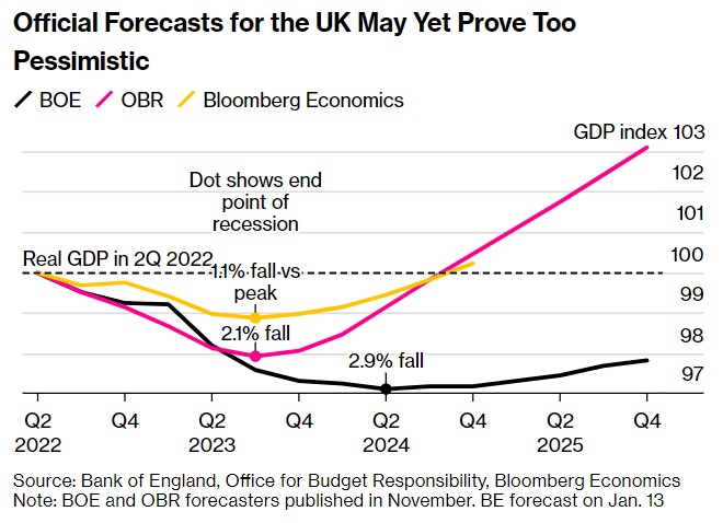 英国11月产出意外增长,这意味着去年该国经济可能避免了衰退。这可能会促使英国央行的新预测显示,经济衰退将比此前预期的要浅,但将持续到2024年。