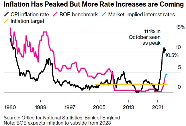智通财经APP获悉,英国央行将于北京时间2月2日20:00公布利率决议,伴随着英国经济中通胀加剧的风险,预计英国央行将连续第十次加息。经济学家和投资者预计,英国央行将把基准贷款利率上调50个基点至4%,这将是自2008年以来的最高水平,并延续30多年来最激进的加息周期。