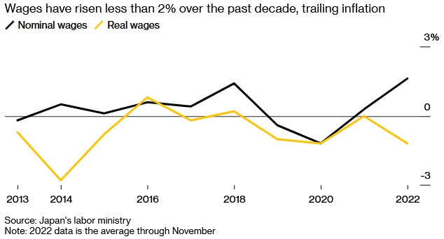 随着日本通胀率达到40年来的最高水平,多家日本大公司已经采取措施大幅提高工资水平。若这一势头得到推动,日本经济似乎将走向一个拐点,而这可能会被证明日本央行在4月份开始的新行长任内作出变革是合理的。