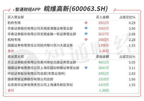 皖维高新(600063.SH):机构主导,游资分歧,今日共2家机构席位出现在龙虎榜单上,合计净买入6004万元,买二是知名游资的席位买入3565万元,买三是知名游资苏南帮的席位买入2637万元,当日净买入611万元,该股今日放量突破所有均线,预计有溢价。