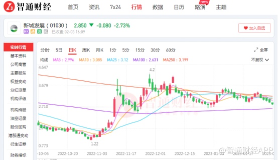 1月30日,随着业绩盈警公告一出,新城发展(01030)股价应声下滑,截至2月3日已连续下跌5日。与此同时,成交量徘徊于1000-3000万区间,相比其他内房股来说备受冷落。