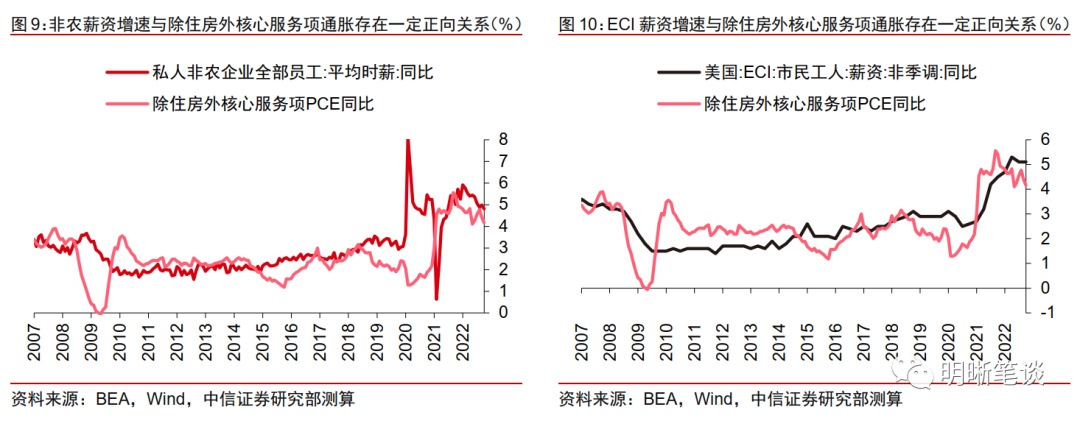 短期或较难看到美国薪资环比增速大幅放缓,这将导致除住房外核心服务项通胀增速出现明确回落趋势的时点仍具有高不确定性。2023年1月美国平均时薪环比0.3%符合预期,低于前值0.4%(修正后),平均时薪同比为4.4%,在基数效应下低于前值4.6%,高于预期4.3%。即使当前经济动能存在一定放缓,但薪资增速粘性仍较高,历史上存在经济衰退也较难短期推动薪资增速大幅下行的情形。在当前美国劳动力市场供需仍不平衡的时期,薪资环比增速较难降温,这将导致除住房外核心服务项通胀,也是2月议息会议后新闻发布会中鲍威尔多次提及需重点观察的通胀数据,短期较难出现明显下行趋势。