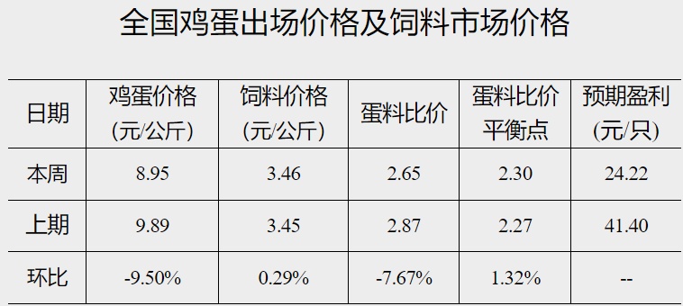截至2023年2月1日当周,全国蛋料比价为2.65,较春节前(1月18日)下跌7.67%。按目前价格及成本推算,未来蛋鸡养殖盈利为每只24.22元。春节假期归来,经销商阶段性补货,需求量恢复性提升,拉动鸡蛋价格上涨,但周均价仍低于节前水平。目前市场供需大致平衡,但阶段性补货后,短期内需求有降低趋势,预计下周蛋价有趋弱风险,蛋价养殖盈利或相应收窄。