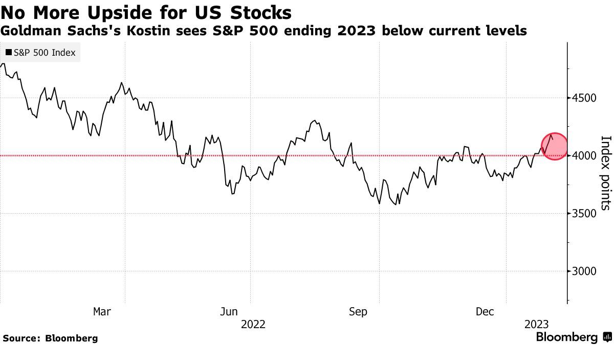 美股难以延续反攻浪潮——高盛预计,2023年标普500指数(S&P 500)将低于当前水平