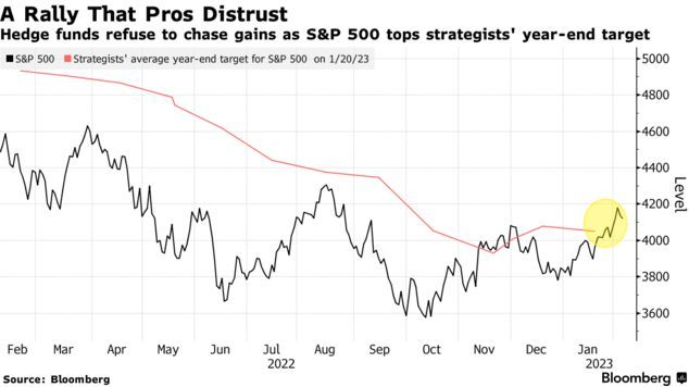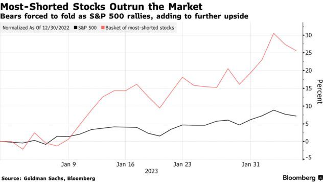 进入2023年,由于美股在1月无视摩根士丹利和摩根大通等公司的预测员发出的上半年形势将变得艰难的警告而出现上涨,股票敞口较低的对冲基金正争先恐后地平仓空头头寸。在纳斯达克100指数创下二十年来最佳年度开局之际,高盛追踪的基金迅速削减了对科技股的看跌押注,空头回补创下两年来最快的速度。