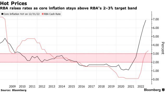 智通财经APP获悉,在今年的第一次会议上,澳洲联储将利率上调25个基点至3.35%,达到2012年9月以来的最高水平,符合市场预期。澳洲联储还表示需要进一步收紧货币政策以抑制顽固的高通胀。决议公布后,澳元兑美元一度升至69.51美分的高点,而三年期国债收益率上涨18个基点至3.28%,股市则下跌0.5%。