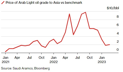 智通财经APP获悉,沙特阿拉伯出人意料地提高了向其主要市场亚洲客户出售原油的价格,并同时提高了欧洲和美国地区的原油售价,表明其对石油市场的需求正持乐观态度。虽然原油期货价格近期下跌了约5%,但沙特表示仍将提高油价,主要由于不断上升的利率水平正对消费构成压力,且市场对中国于疫情封锁结束后的经济反弹持乐观态度。