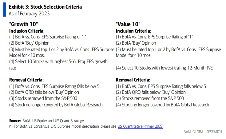 “顾名思义,根据我们的筛选方法,成长型10只股票包括10只量化分数排名最靠前的成长型股票,而价值型10只股票则包括10只量化分数排名最靠前的价值型股票。”美国银行股票市场和量化研究团队。