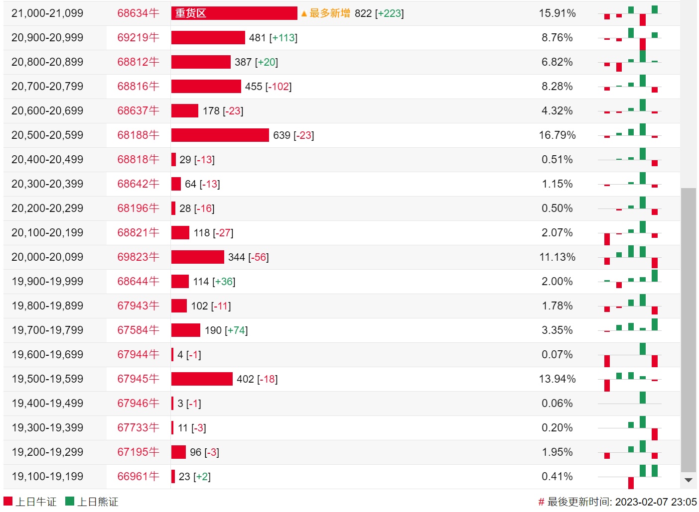 牛证街货重货区和最多新增都在21000-21099区间,该区间最新牛证数量为822张,较上一交易日增加223张。