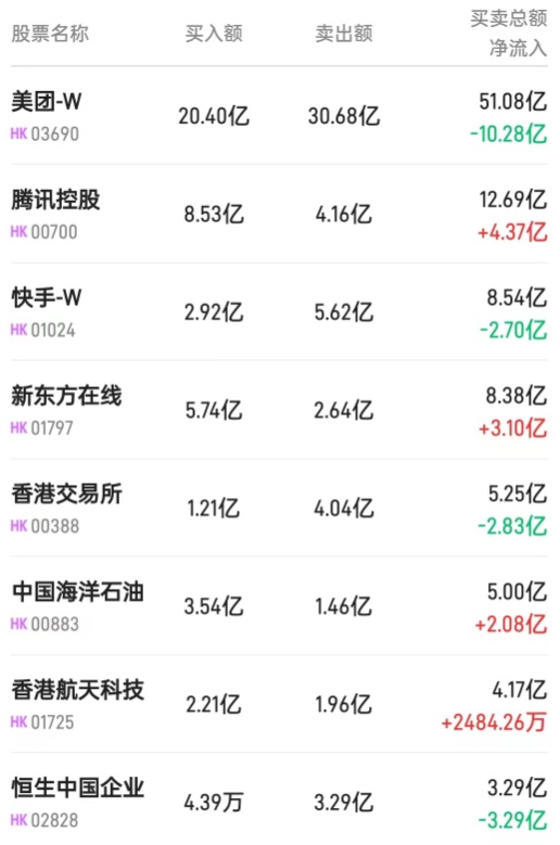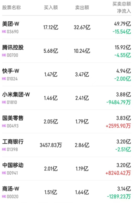 此外,中国移动(00941)、国美零售(00493)分别获净买入8240万、2595万港元。而恒生中国企业(02828)、腾讯(00700)分别遭净卖出3.29亿、1.88亿港元。