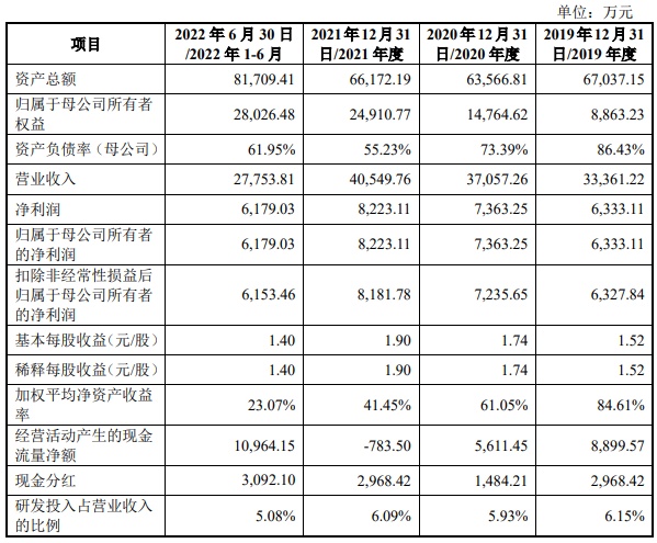 财务方面,于2019年度、2020年度、2021年度以及2022年上半年,博科测试实现营业收入分别约为3.34亿元、3.71亿元、4.05亿元以及2.78亿元;净利润分别为6333.11万元、7363.25万元、8223.11万元以及6179.03万元。