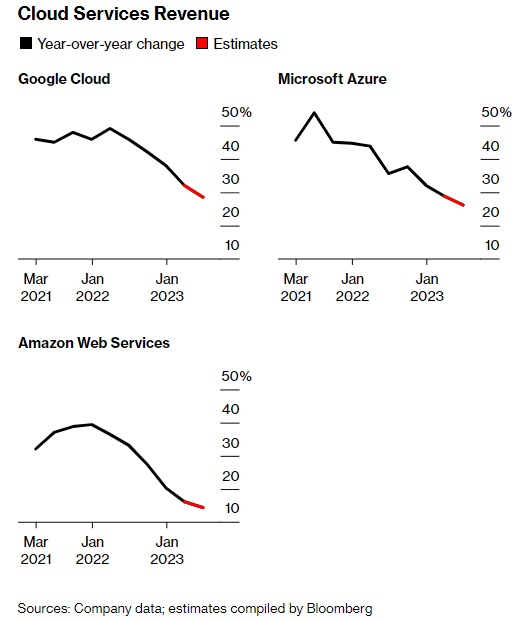 对于大型科技公司来说,这是一个令人不安的变化,这些公司一直将出租计算能力和存储空间视为有吸引力的第二发展点。亚马逊AWS现在仅能贡献不到总营收的六分之一,而如果没有云计算部门,该公司将无法盈利;微软的Azure在过去十年中推动了整个公司营收的复苏;谷歌在开展云业务方面落后于主要竞争对手,该公司现在期盼着其仍未盈利的云部门将帮助公司实现广告业务以外的多元化。