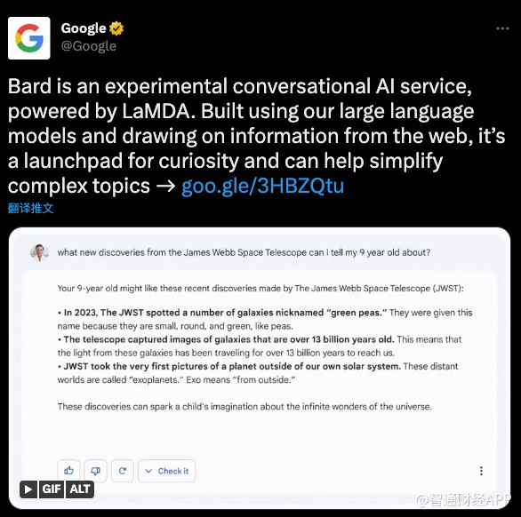 谷歌的一位发言人表示:“这凸显了严格测试过程的重要性,这正是我们本周启动受信任测试人员计划的原因。我们将把外部反馈与我们自己的内部测试结合起来,以确保Bard的回答在质量、安全性和根植于现实世界信息方面符合高标准。”