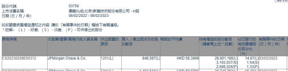 智通财经APP获悉,香港联交所最新资料显示,2月3日,小摩减持康龙化成(03759)84.6597万股,每股作价58.3969港元,总金额约为4943.86万港元。减持后最新持股数目约为2990.12万股,最新持股比例为14.87%。