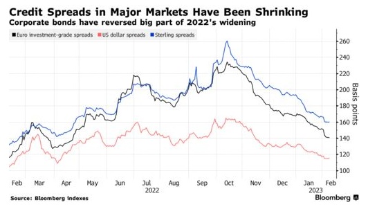 自去年10月以来,交易员押注央行将以低于此前预期的水平停止加息,导致信贷价格飙升。但在以大约十年来的最低价格买入后,某些投资者放弃了高风险投资,因为此后的收益使债券溢价大幅缩水,无法再弥补公司健康状况的潜在下滑。