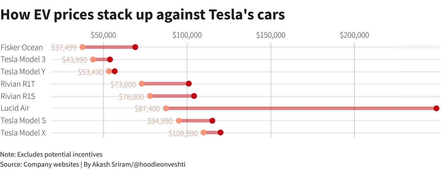 在借贷成本和通胀上升挤压消费者支出之际,这场价格战导致Rivian和Lucid等亏损的初创电动汽车公司更难抢占市场份额。