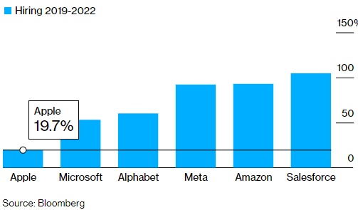 (苹果在过去三年招聘新增的员工数为同行中最低)