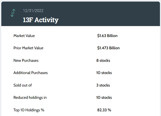 最新数据显示,景林资产第四季度持仓总市值为16.3亿美元,上一季度总市值为14.73亿美元,环比增长11%。在第四季度的持仓组合中,新增8只个股,增持10只个股;同时清仓了3只个股,减持10只个股。其中,前十大持仓标的占总市值的82.33%。