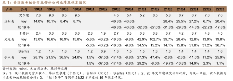 而复盘海外医美市场疫后表现,可以看出收入端均呈现恢复态势,疫情影响偏阶段性,放开后恢复趋势明确,但恢复程度不尽相同,整体来看轻医美公司需求恢复弹性较大。