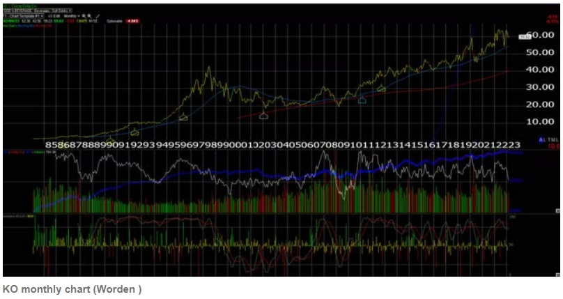 从1998年的高点开始,该股并没有出现传统意义上的突破,但在剥离装瓶业务,并重新将业务重点放在销售件数(case volume)和新产品增长后,该股在过去几年上升至45-60美元的区间。