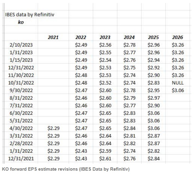 自2020年9月以来,可口可乐的每股收益平均能超出预期10%至20%,但在过去两个季度,这种情况有所缓和,每股收益超出预期幅度平均仅为4%-8%。