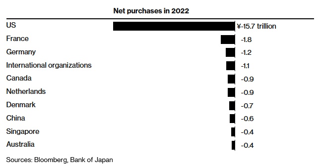 根据日本财务省和日本证券交易协会的最新数据,日本投资者在2022年抛售了23.8万亿日元(约合1810亿美元)的海外债券,这是自1996年以来的最高水平。与此同时,日本投资者去年净买入了30.3万亿日元的地方政府债券,为10年来最高水平。在此背景下,全球债券投资者的主要担忧在于,如果植田和男真的取消收益率曲线控制(YCC) 政策,日本投资者还将继续抛售超过2万亿美元的海外债券。