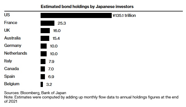 去年12月,日本央行出人意料地将日本十年期国债收益率目标区间由-0.25%至0.25%扩大为-0.5%至0.5%,此举推动日元走高,同时影响了美债、美股、澳元和黄金等各种资产。日本投资者持有逾1万亿美元的美债,以及荷兰、法国、澳洲和英国的大量债券。