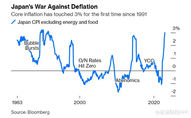 日本核心通胀率自1991年以来首次触及3%