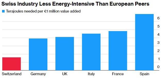 在瑞士,主要是商品和服务比其他地方都贵,因此,尽管能源实际上并不便宜,但消费者支付的费用在总支出中所占的比例较小。除了简单的数学计算,瑞士经济可以说比欧洲其他国家更节能。瑞银集团经济学家Alessandro Bee指出,能源价格的冲击不会迅速导致消费者价格上涨,这限制了第二轮效应。