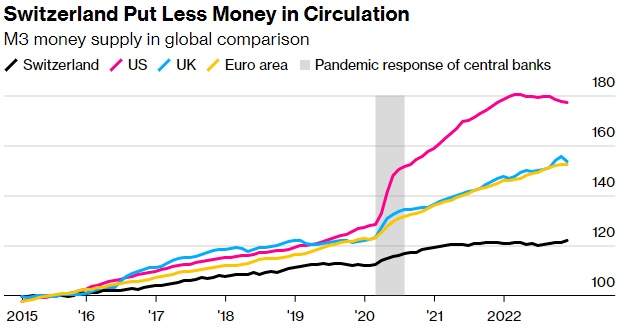 从2021年的低点开始,瑞士法郎兑欧元名义上升值了约13%,使进口产品更便宜,并为隔绝输入性通胀建立了防火墙。