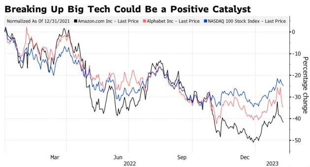 在大型科技公司面临增长趋势趋弱、经济前景可能阻碍该板块重新获得市场领导地位的情况下,反垄断热潮的复苏似乎是它们需要的最后一件东西。不过,一些投资者不同意这种说法。