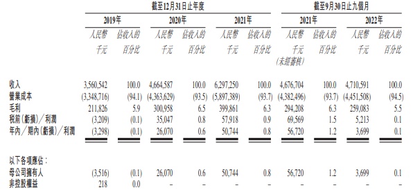 财务方面,于2019年、2020年、2021年及2021、2022年截止9月30日止九个月,维天运通收入分别约为35.61亿元、46.65亿元、62.97亿元、46.77亿元、47.11亿元人民币;毛利分别约为2.12亿元、3.01亿元、4.00亿元、2.94亿元、2.59亿元人民币。