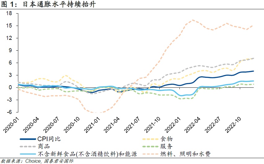 作为影响货币政策的另一个核心因素,日本的经济增长具有上行动力。在日本央行1月最新的经济预测中,日本2023年实际GDP预期增速中值为1.7%,这在全球主要经济体陷入衰退预期的环境下显得格外亮眼。另一方面,在中国2023年经济预期大幅上调的背景下,日本经济增长也可能会超预期。然而,今天公布的日本2022年第四季度GDP不及预期,也意味着日本经济增长前景仍然面临很多挑战。