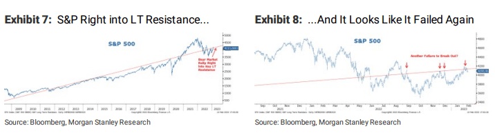 Wilson表示:"在两周前短暂突破这一阻力位后,标普500指数再度跌破该阻力位,似乎很容易受到熊市恢复的影响,就在人们普遍放弃时机的时候。换句话说,投资者需要为周期性熊市立即重新确立其主要趋势做好准备。”