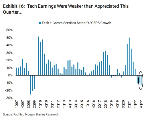 Wilson在一份报告中写道:“早在7月底,我们就假设,市场正试图为美联储的转向定价,而这种转向最终不会很快到来。美股股市似乎再次犯了同样的错误,因为今年以来由科技公司和增长公司推动的领先行业表现看起来与去年夏天的熊市反弹一致,当时市场也过早地对美联储政策转向抱有希望。”