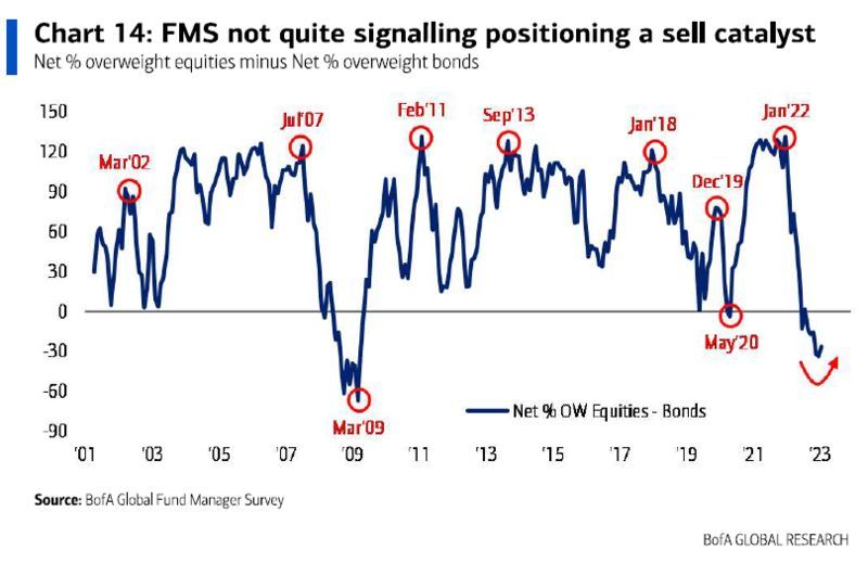美银策略师Michael Hartnett表示,目前美股的总体仓位足够轻,足以避免股市下跌。与9月份52%的峰值相比,目前约有31%的投资者减持股票,但这一比例仍高于历史平均水平。Hartnett还称,本月现金配置有所减少,目前处于去年2月俄乌冲突爆发前的水平。