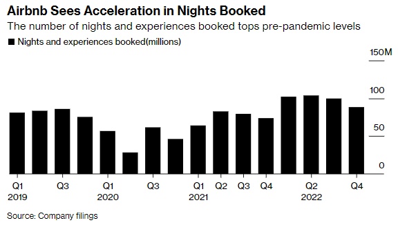 预计2023年第一季度晚上和体验的预订数同比增长“几乎与2022年第四季度一样强劲”。