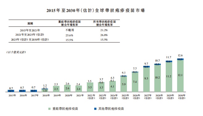 根据弗若斯特沙利文资料,随着公众对带状疱疹的认识不断提高以及可用的带状疱疹疫苗产品数量增加,中国的带状疱疹疫苗市场有望显著增加。