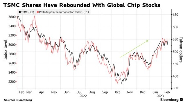 随着投资者的热捧,台积电的股价在全球芯片股上涨的情况下于彼时拉高。即使上个月,该公司宣布了进一步削减支出的计划,并宣布了四年来首次季度收入下降,但涨幅仍在扩大。