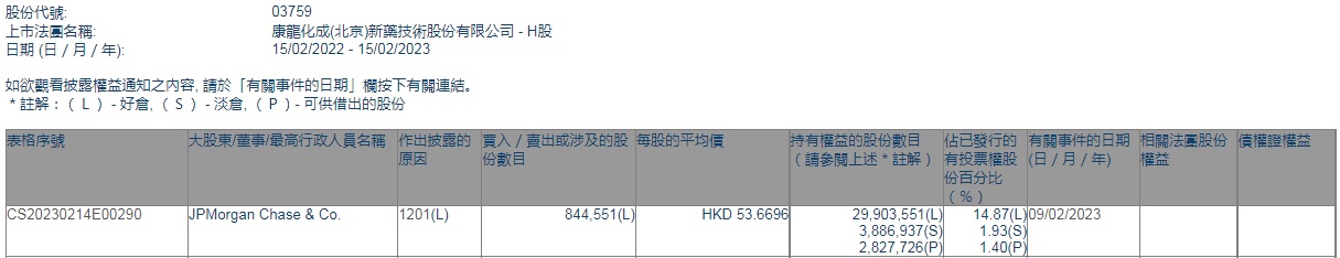 智通财经APP获悉,香港联交所最新资料显示,2月9日,小摩减持康龙化成(03759)84.4551万股,每股作价53.6696港元,总金额约为4532.67万港元。减持后最新持股数目约为2990.36万股,最新持股比例为14.87%。