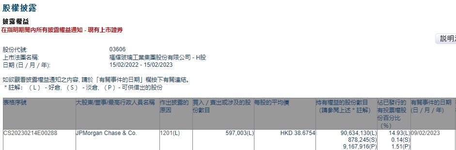 智通财经APP获悉,香港联交所最新资料显示,2月9日,小摩减持福耀玻璃(03606)59.7003万股,每股作价38.6754港元,总金额约为2308.93万港元。减持后最新持股数目约为9063.41万股,最新持股比例为14.93%。