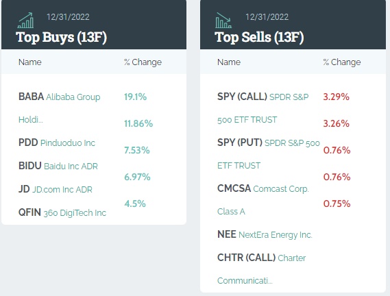 从持仓比例变化来看,前五大买入标的分别是:阿里巴巴、拼多多、百度、京东以及360数科(QFIN.US)。