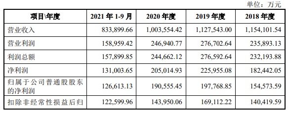 财务方面,2018年、2019年、2020年以及2021年1-9月,徐矿股份分别实现营业收入约115.41亿元、112.75亿元、100.36亿元、83.39亿元,归属净利润15.46亿元、19.78亿元、19.06亿元、12.66亿元。