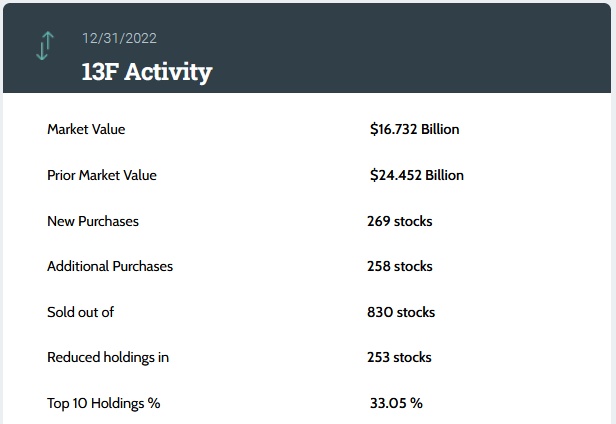 野村控股Q4持仓总市值为167.32亿美元,上一季度为244.52亿美元,环比下降32%。野村控股在Q2的投资组合中新增了269只标的,增持258只标的,减持253只标的,清仓830只标的;其中前十大持仓标的占总市值的33.05%。