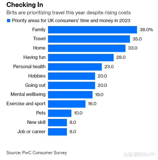 尽管成本飙升,旅游仍是英国人的优先支出事项