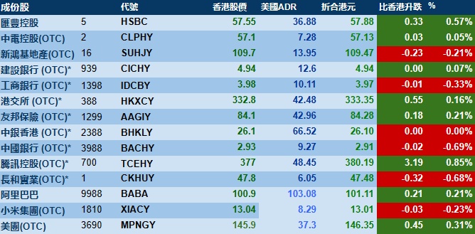 智通财经APP获悉,周三美股三大指数集体收涨,港股ADR指数上涨,按比例计算,收报20859点,较香港收市涨47.36点或0.23%。